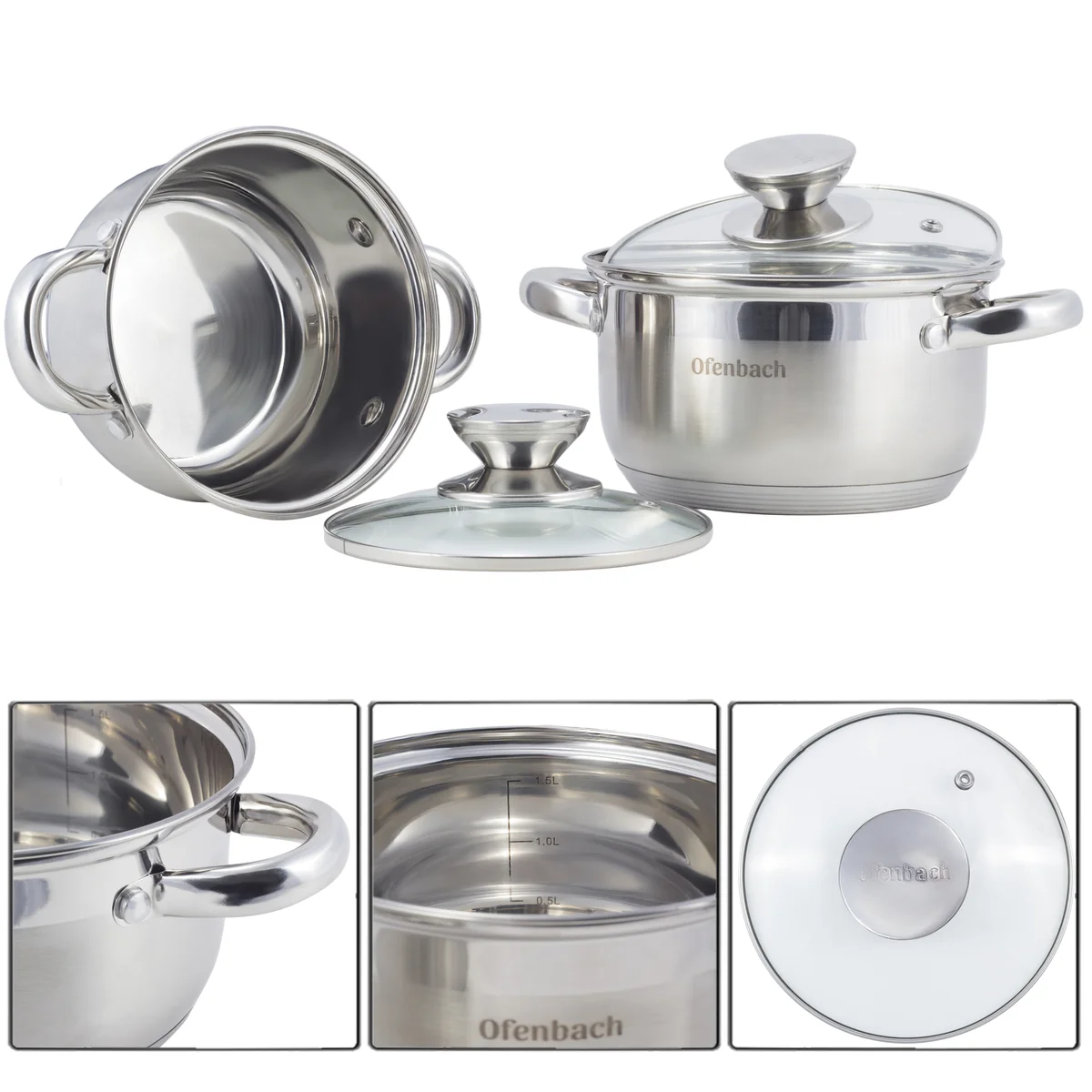 Набор кастрюль 4 предмета из нержавеющей стали Ofenbach NB 100003 (1,1 л; 1,7 л)