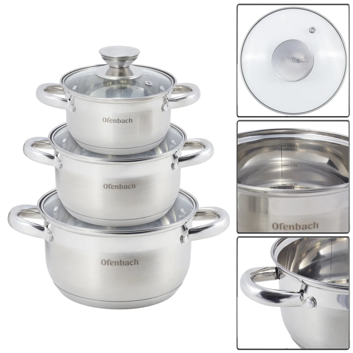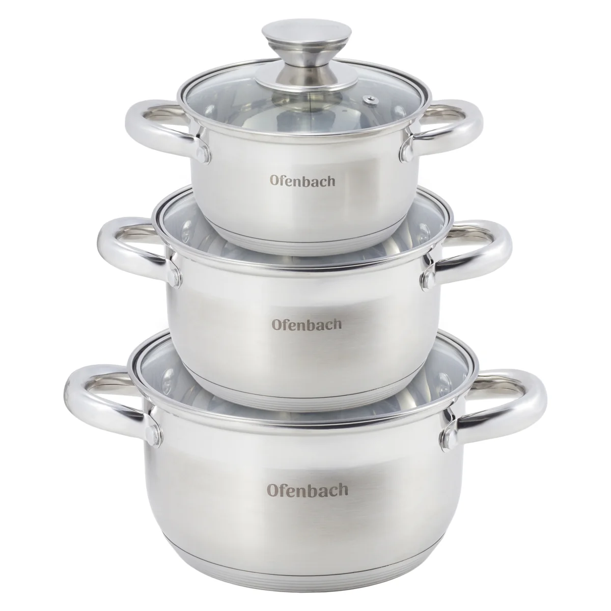 Набор кастрюль 6 предметов из нержавеющей стали Ofenbach NB 100002 ( 1,1 л; 1,7 л; 2,4 л)