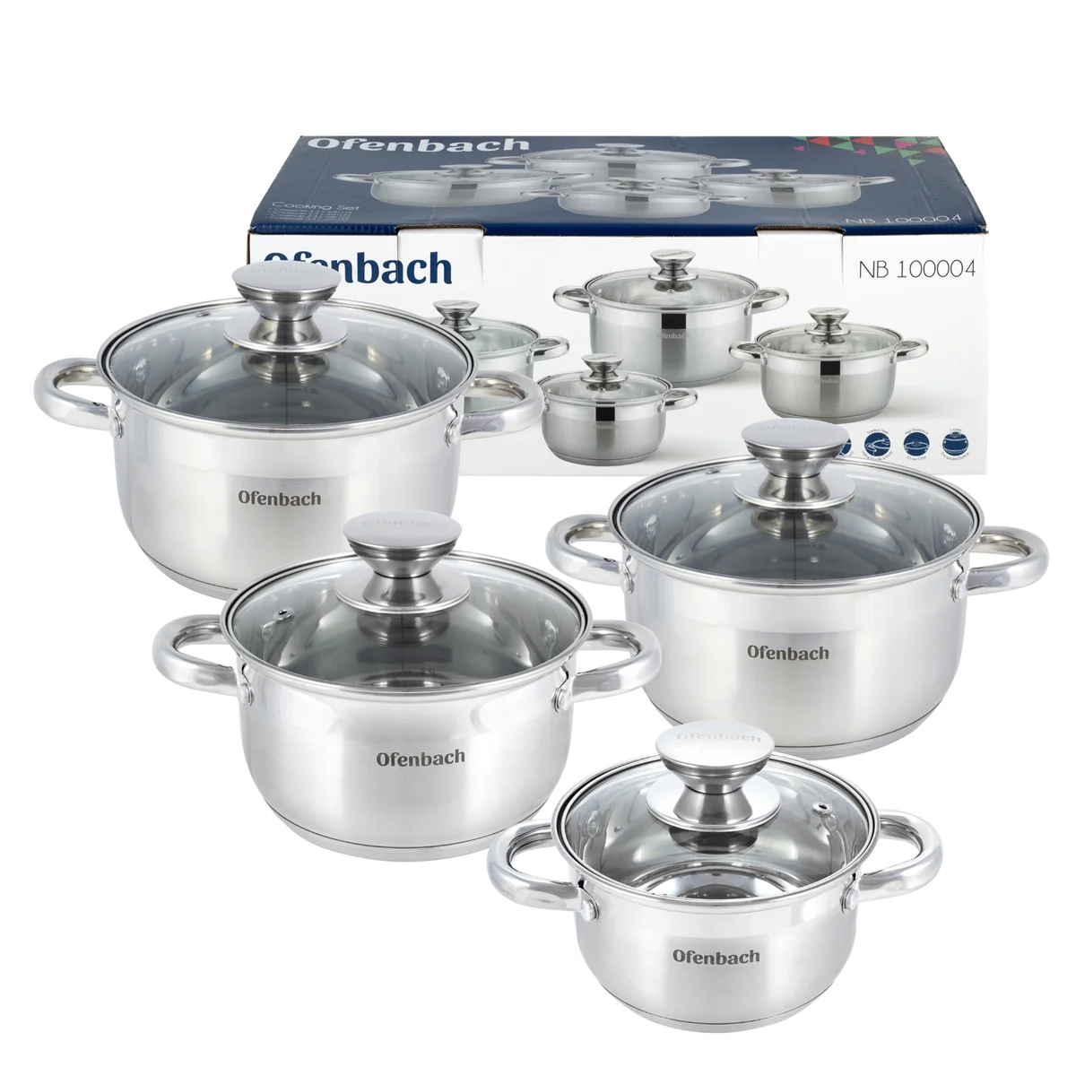 Набор кастрюль 8 предметов из нержавеющей стали Ofenbach NB 100004 (1,1 л; 1,7 л; 2,4 л; 3,4 л)