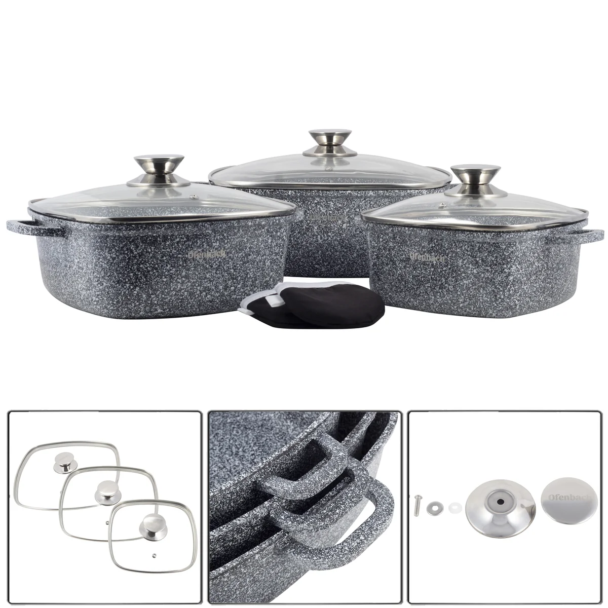 Набор квадратных кастрюль с прихватками Ofenbach NB 100509 из литого алюминия