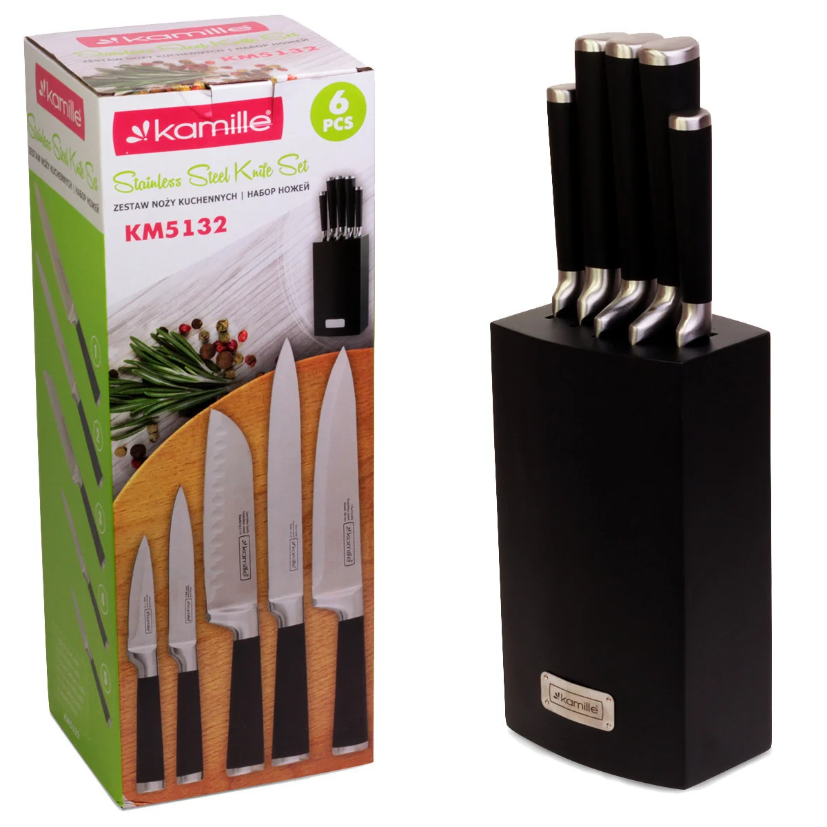 Набор ножей из нержавеющей стали 6 предметов Kamille KM-5132 (5 ножей на подставке)
