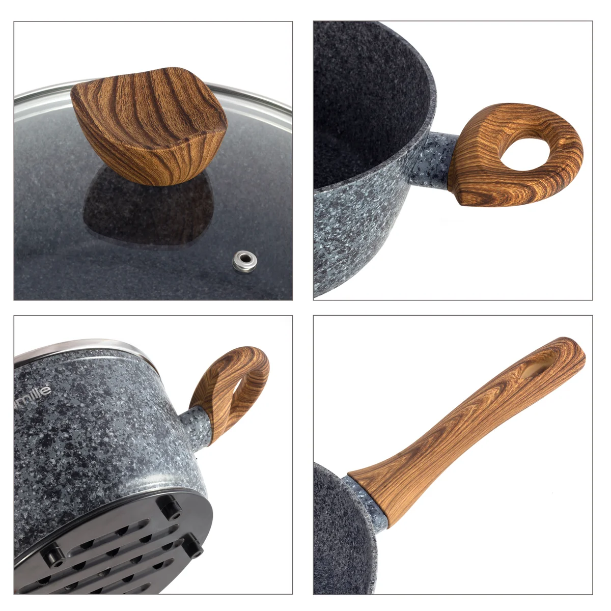 - Материал ручек: бакелит с покрытием soft-touch, цвет под дерево.