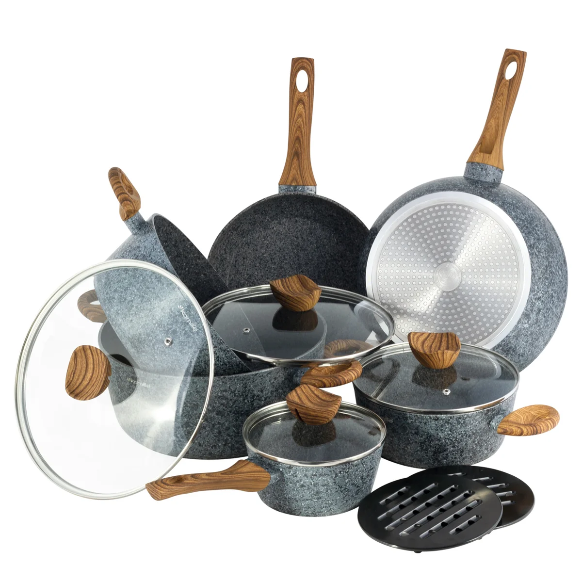 Набор посуды Kamille KM-4440 из алюминия с антипригарным мраморным покрытием