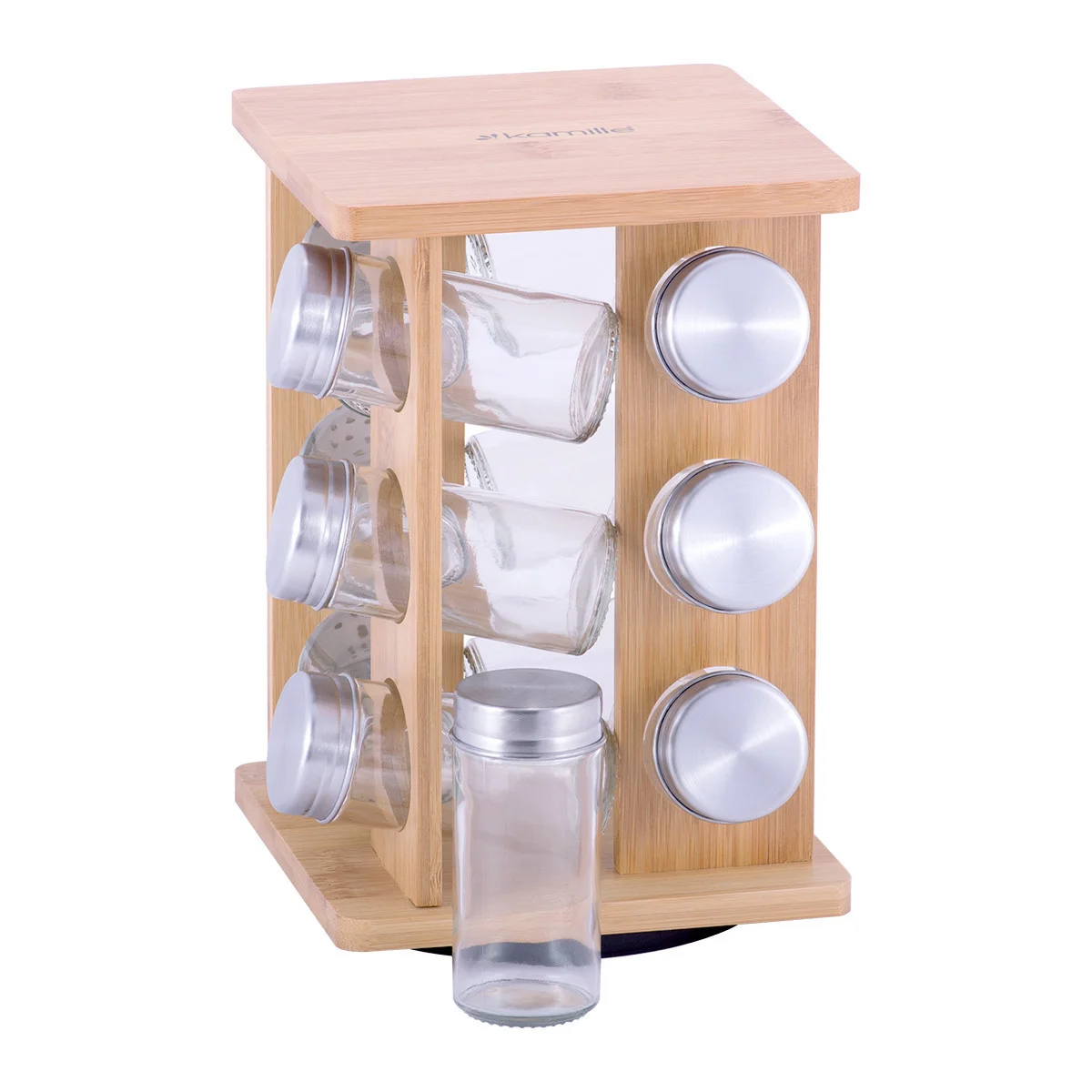 Набор емкостей для специй на прямоугольной бамбуковой подставке Kamille KM-7035 идеально подойдет для хранения различных приправ и специй. Благодаря прозрачным стенкам баночек, можно видеть их содержимое. Такой набор не только стильно дополнит интерьер кухни, но и станет незаменимым помощником в приготовлении ваших любимых блюд С помощью функционального набора для специй вы сможете с легкостью завершить Ваше блюдо, добавив к нему свой темперамент и характер. Все 12 баночек сделаны из стекла, они оснащены герметично закрывающимися крышками из нержавеющей стали, поэтому исключительный аромат каждой приправы не испарится со временем. Такой набор станет идеальным дополнением при приготовлении любого блюда, а благодаря удобной подставке спецовники всегда будут под рукой, и их стильный дизайн подойдет к интерьеру любой кухни. Также такой набор станет отличным подарком.