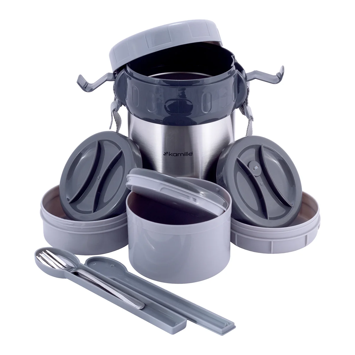 Термос пищевой Kamille KM-2120 (2 л.) из нержавеющей стали с 3 емкостями