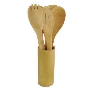 Набор кухонных принадлежностей из бамбука включает в себя пять лопаток, а также стакан-подставку для хранения приборов. Такой набор станет настоящим помощником на кухне любой современной хозяйки. Приборы из бамбука очень удобны при варке, выпечке и жарке во всех видах посуды, в том числе и в посуде с антипригарным покрытием.