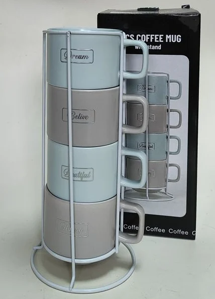 Набор кружек «Элитный вкус» от производителя «КерамСтрой» (артикул R649/4655МС) включает 4 керамические кружки объёмом 250 мл и металлическую подставку для удобного хранения.