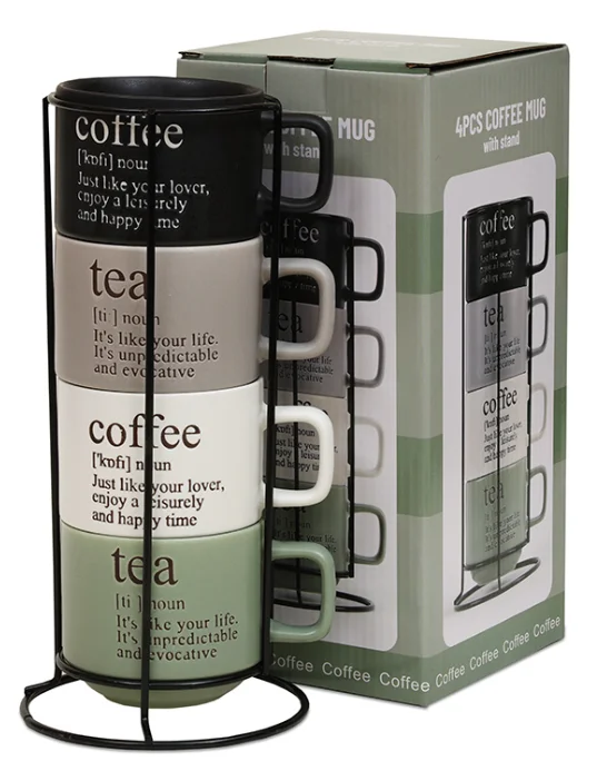 Набор кружек «Настроение вкуса» от производителя «КерамСтрой» (артикул R649/4600) включает 4 керамические кружки объёмом 250 мл и металлическую подставку для удобного хранения.