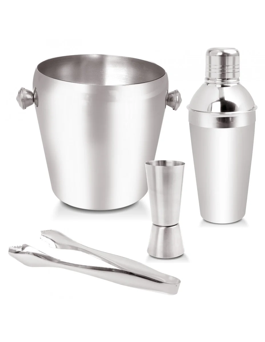 - Шейкер для коктейлей - объем 500мл, мерка - 30 / 60мл, ведёрко для кубиков льда -14см, щипцы для кубиков льда 15см.