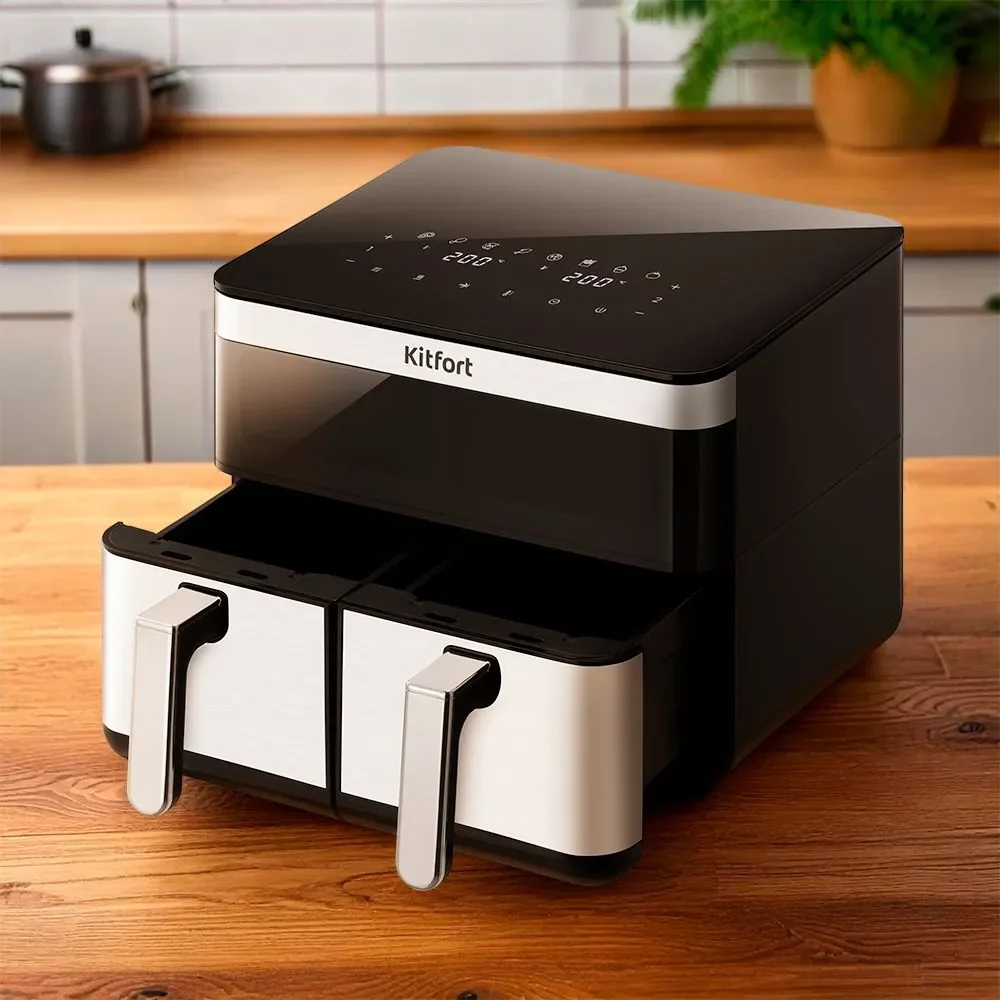 Аэрогриль Kitfort КТ-8110 позволяет готовить разнообразные продукты без использования масла, сохраняя их сочность и придавая аппетитную хрустящую корочку.