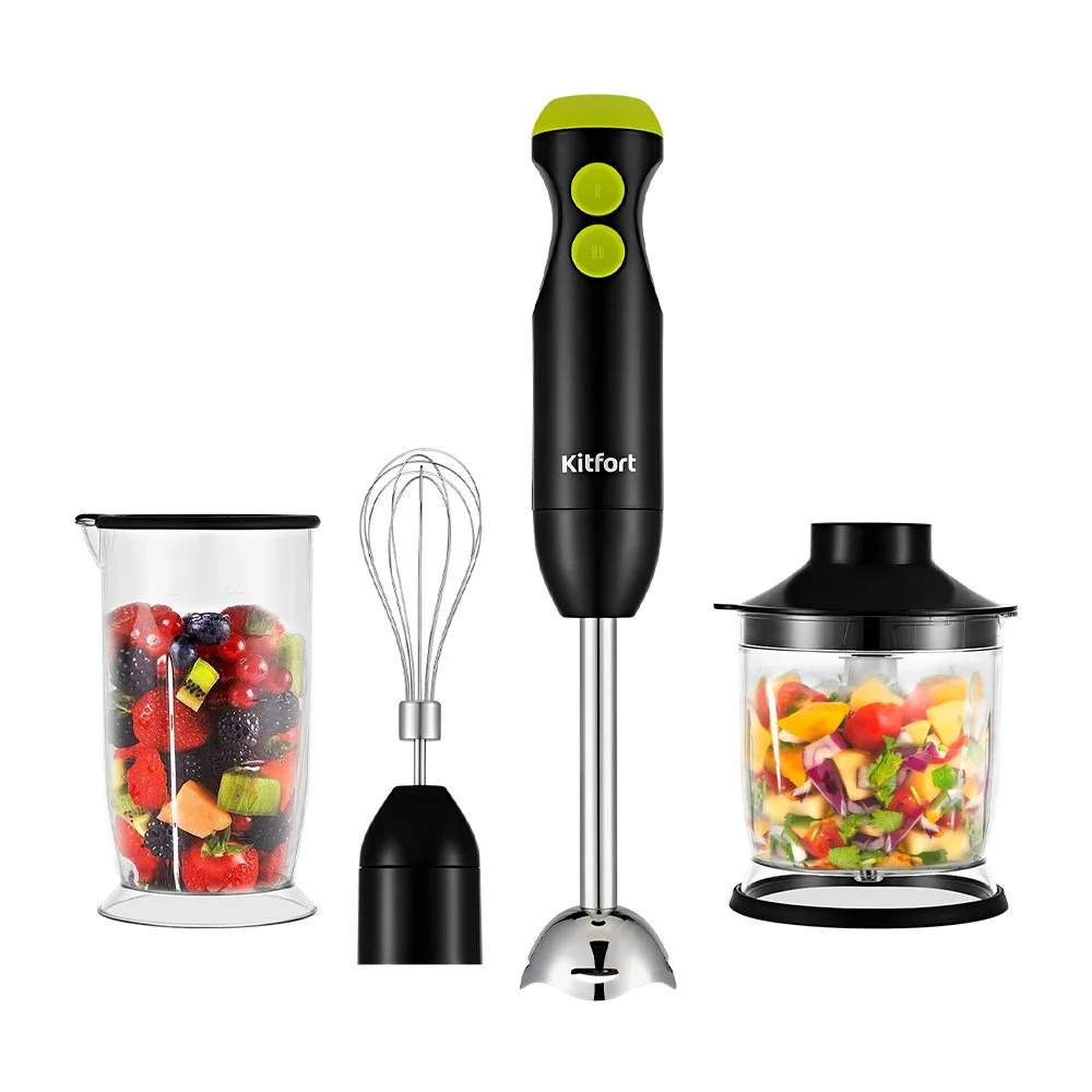 Прибор Kitfort КТ-3041 может выполнять функции измельчителя, погружного блендера, а также в комплекте есть венчик для взбивания. С помощью измельчителя можно быстро измельчить мясо, твёрдый сыр, овощи, травы, чеснок, ягоды и многое другое на ваш вкус!