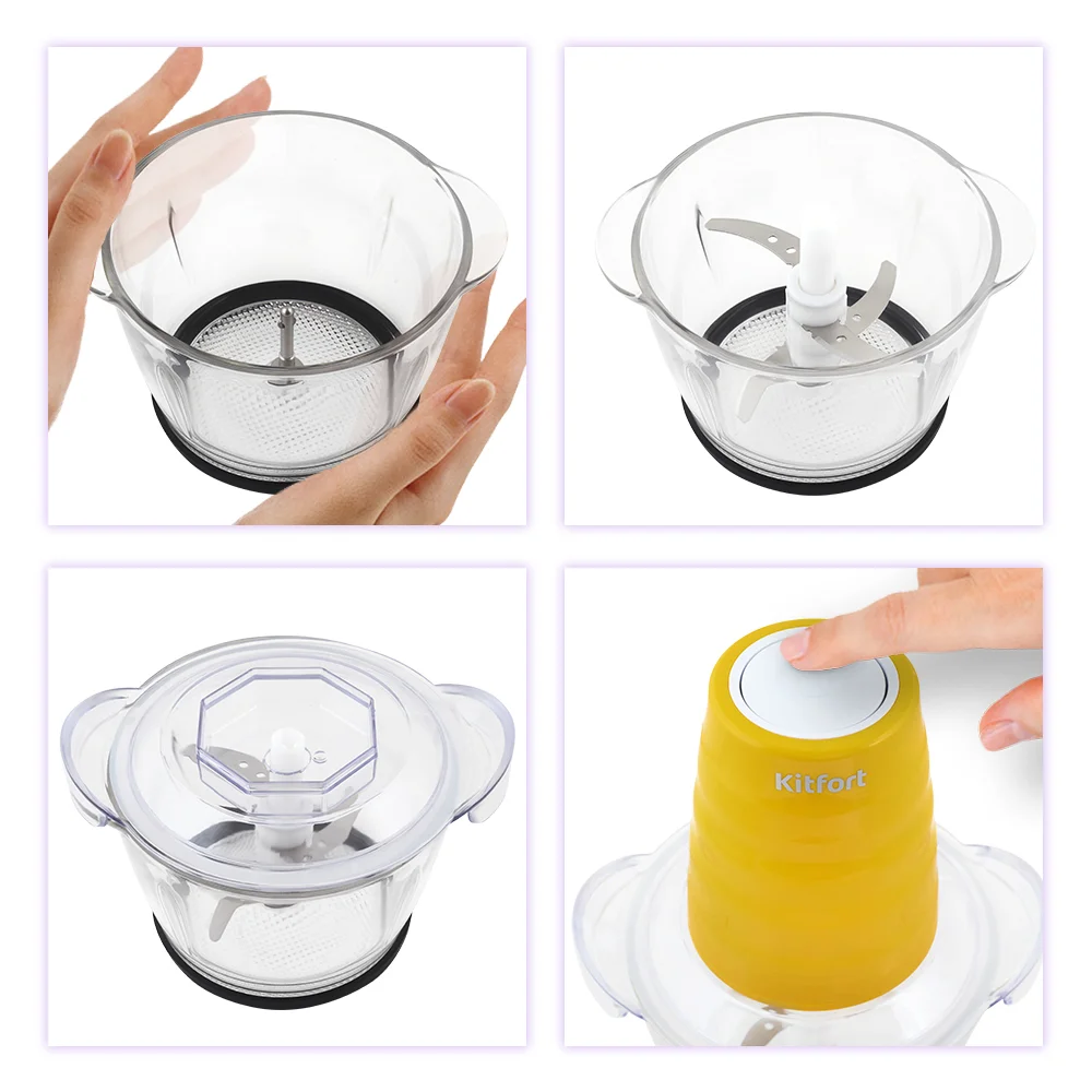 Стильный измельчитель Kitfort КТ-3017 быстро измельчает мясо, твёрдый сыр, овощи, травы, чеснок, ягоды. Он исключает ваше участие в процессе измельчения, обеспечивая безопасность и экономию времени. Готовить блюда можно гораздо быстрее.