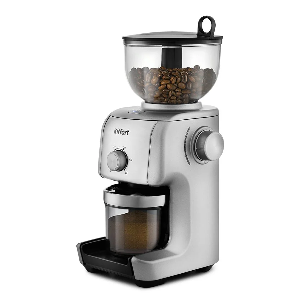 Жерновая кофемолка Kitfort КТ-749 предназначена для помола кофейных зёрен. Она оснащена прочными металлическими жерновами из углеродистой стали. Благодаря чему, при помоле, кофе не перегревается и не меняет свой вкус.