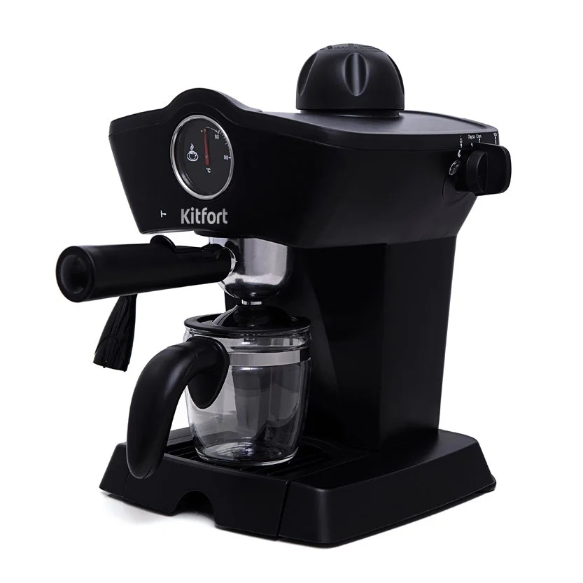 Рожковая полуавтоматическая эспрессо-кофеварка Кіtfort КТ-706 может приготовить до 4 чашек кофе за один раз, оснащена функцией взбивания молока для приготовления капучино, латте, торо, а также поможет разогреть напитки горячим паром.
