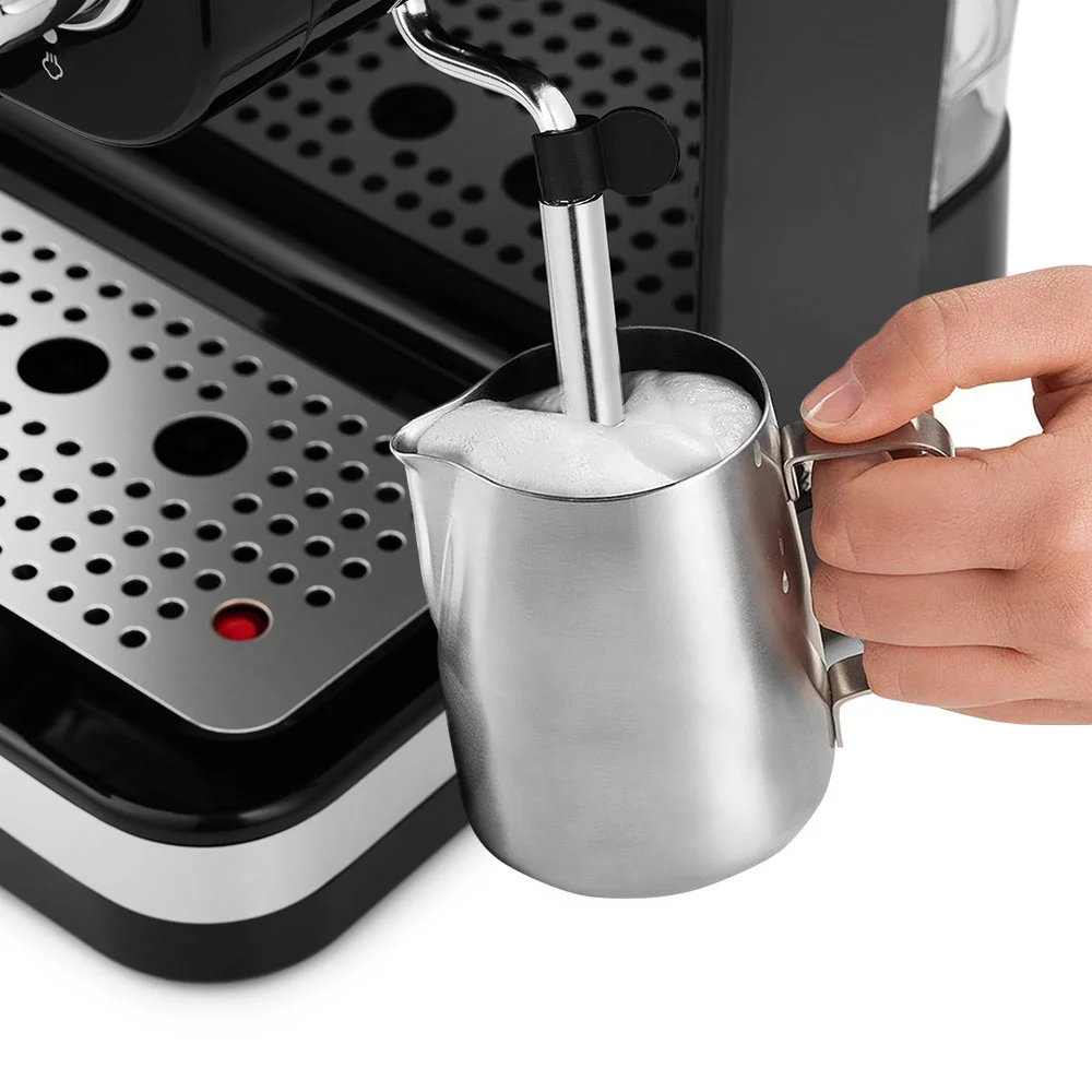 Пользоваться кофеваркой удобно! На панели управления имеются все необходимые кнопки для работы, а также регулятор подачи пара. Термометр отображает приблизительную температуру бойлера. Кофеварка отключается автоматически через 25 минут бездействия.