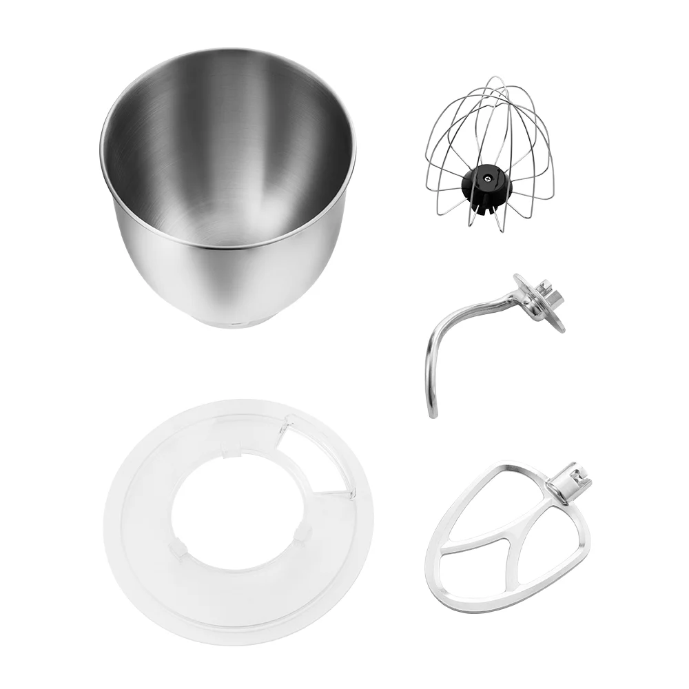 В комплекте идут венчик для взбивания, крюк для замеса крутого теста, насадка для смешивания и приготовления пюре. Форма насадок и чаши подобраны так, что почти при любом количестве продуктов насадка качественно их перемешает.