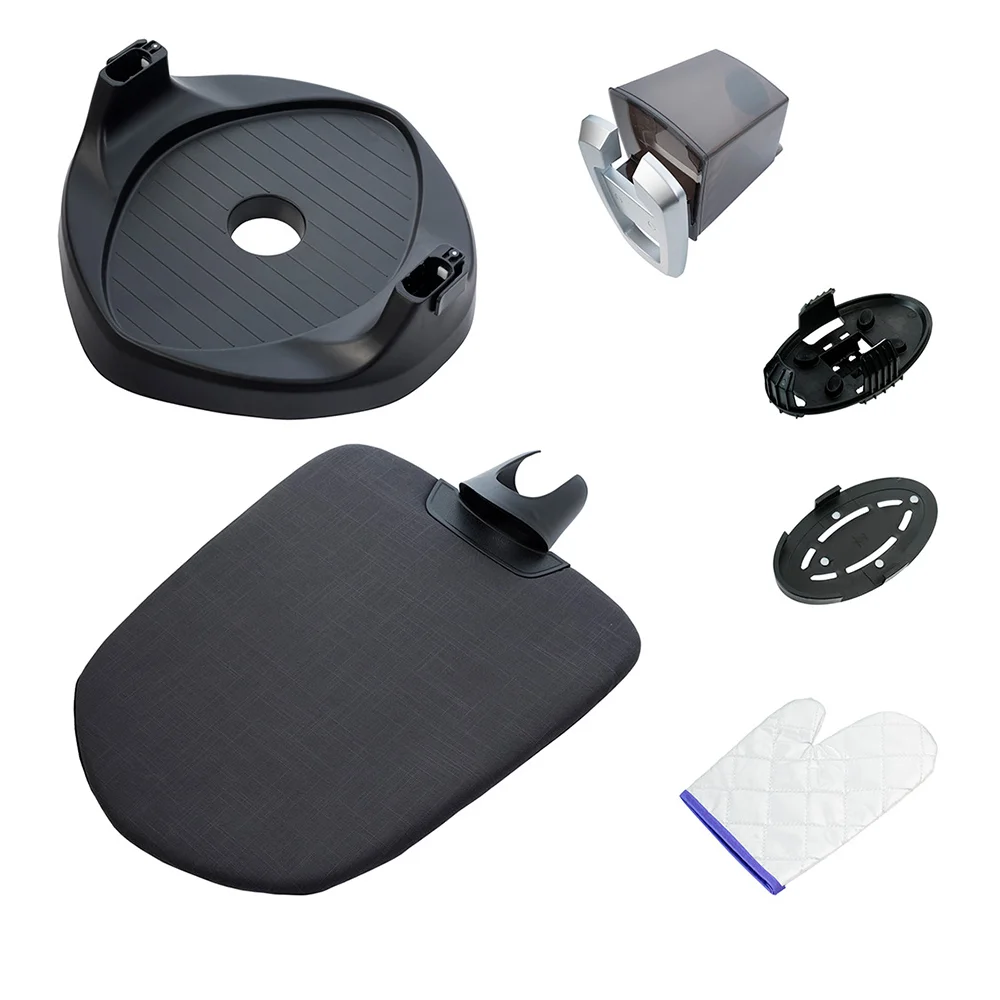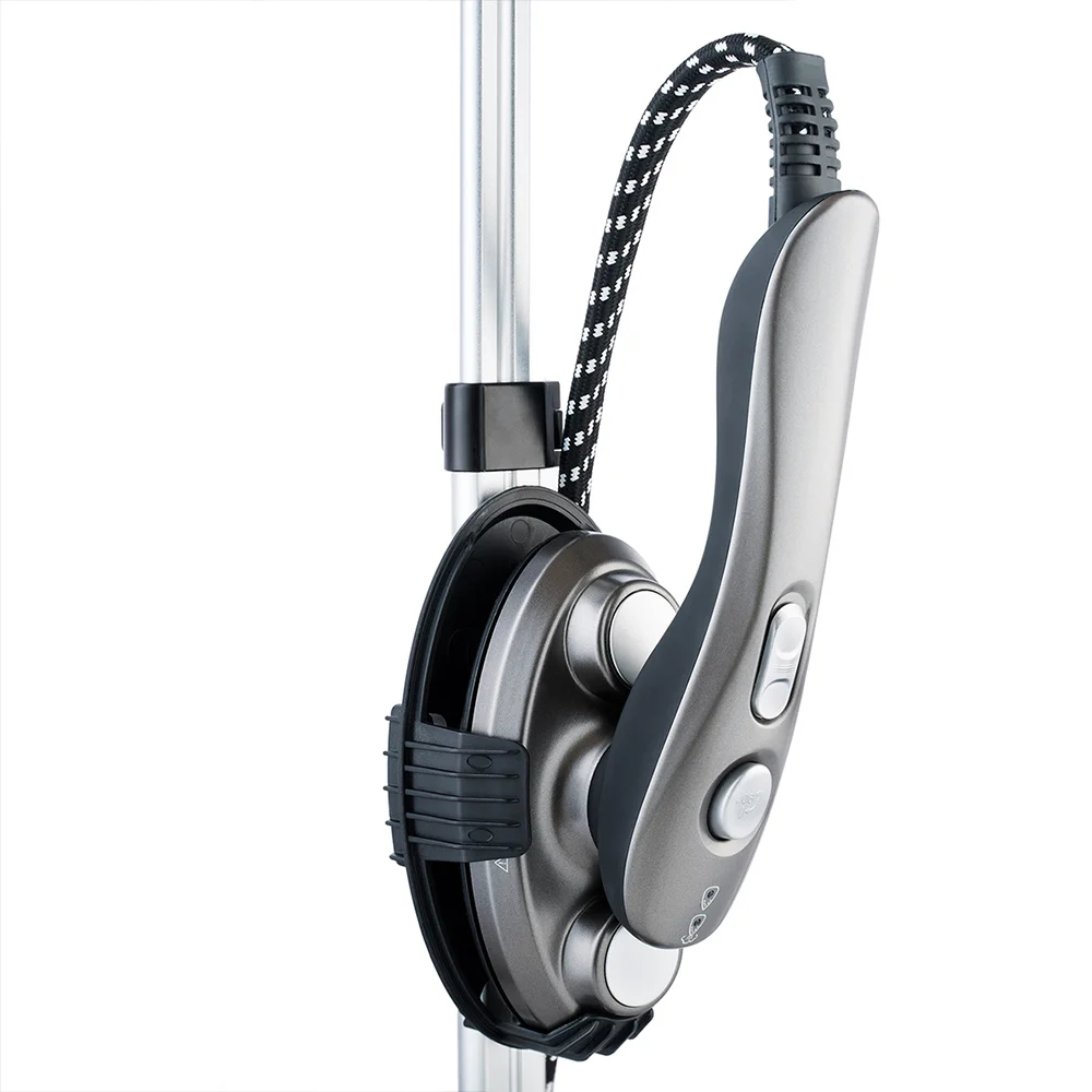 Прибор оснащён держателем утюжка для закрепления на стойке для ещё более удобного отпаривания, а паровой шланг не нагревается во время работы.