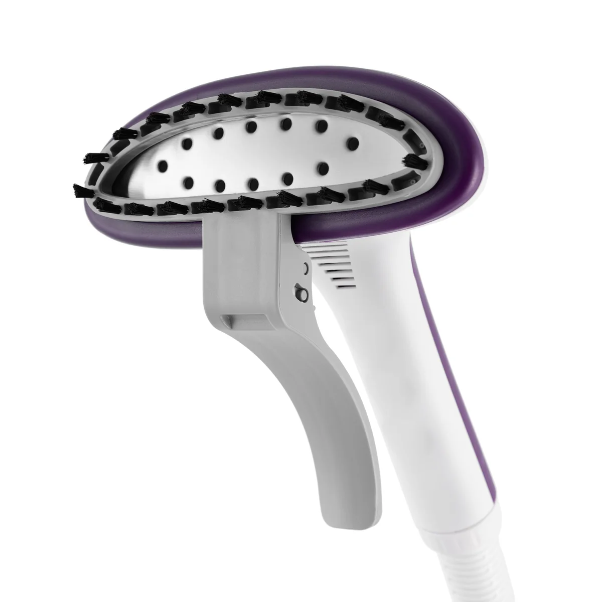 С помощью удобной кнопки с индикатором работы, которая располагается на корпусе отпаривателя, можно в одно нажатие включить прибор.