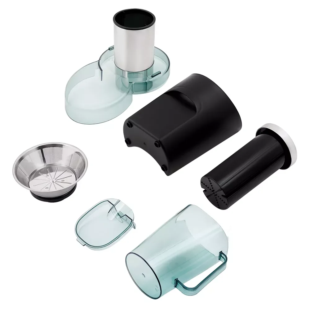 Все комплектующие соковыжималки выполнены из надёжных материалов. Корпус соковыжималки выполнен из прочного пластика, способного выдержать большие нагрузки. Чаша, крышка и толкатель из прочной пищевой пластмассы, а фильтр из нержавеющей стали.