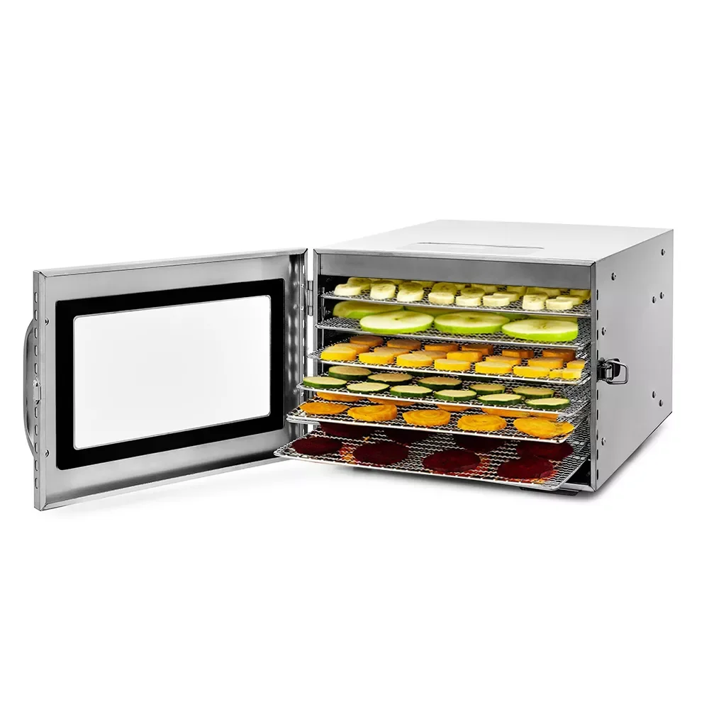 Благодаря компактному корпусу и оптимальному количеству поддонов сушилка для овощей и фруктов не займёт много места у вас на кухне. А через встроенное прозрачное стеклянное окошко вы легко сможете наблюдать за процессом сушки.
