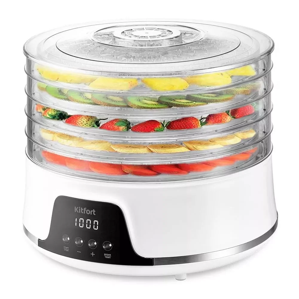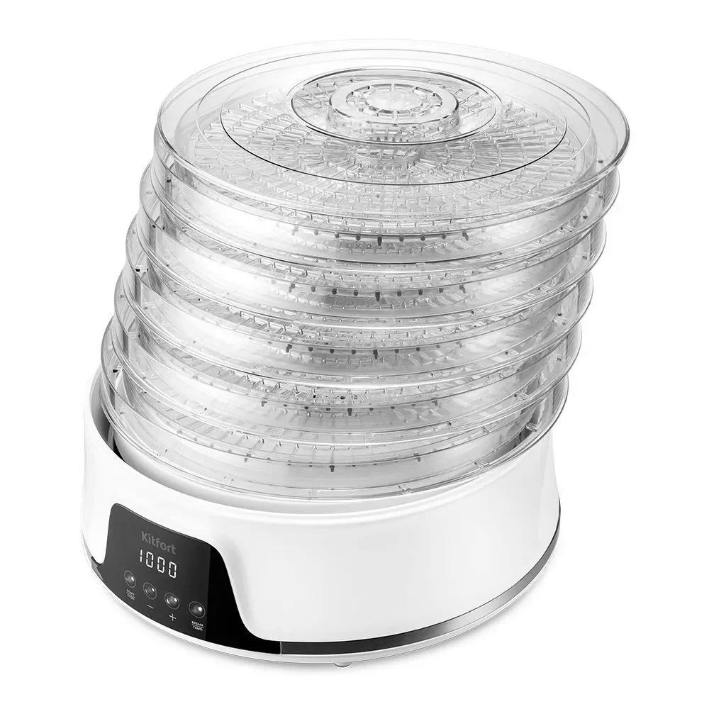 Сушилка Kitfort KT-1944 имеет в комплекте 5 поддонов из прозрачного пластика, так вы сможете наблюдать за процессом сушки. Пластик BRA-free не содержит Бисфенол А, а значит – полностью безопасный для здоровья.