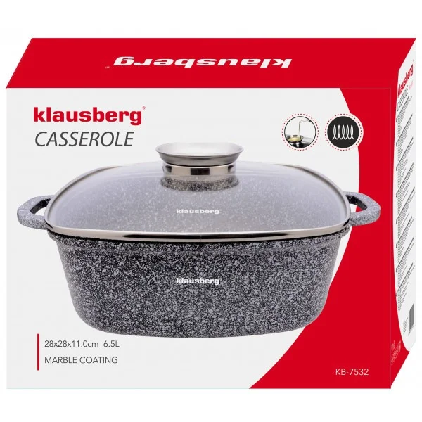 - Квадратная термостойкая кастрюля из литого под давлением алюминия с керамическим мраморным покрытием для приготовления здоровой пищи.