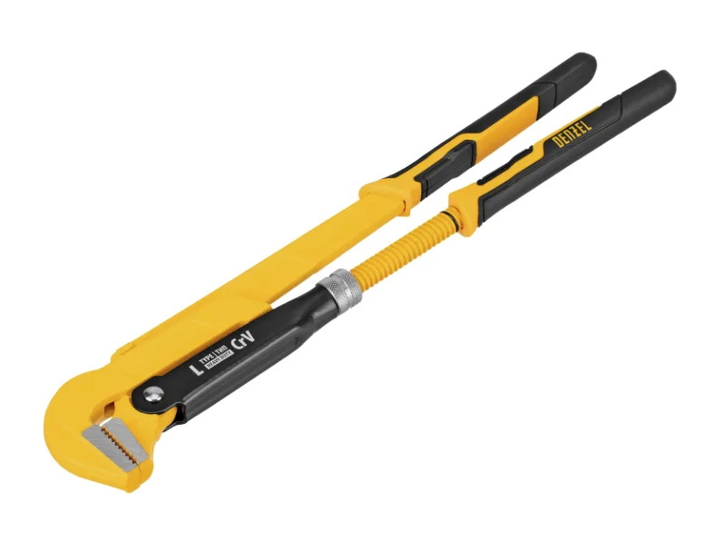 Цельнокованый трубный рычажный ключ №2 Denzel 15647 из стали CrV, тип «L», используется для захвата и вращения труб и фитингов диаметром 1,5″ без специальных граней. L-образная форма оптимальна для удержания плоских деталей. Рычажный механизм обеспечивает высокое прижимное усилие, повышая эффективность работы. Усиленная конструкция выдерживает интенсивные нагрузки и позволяет применять его как в быту, так и в профессиональной сфере — в автомастерских, ЖКХ и т.д.
