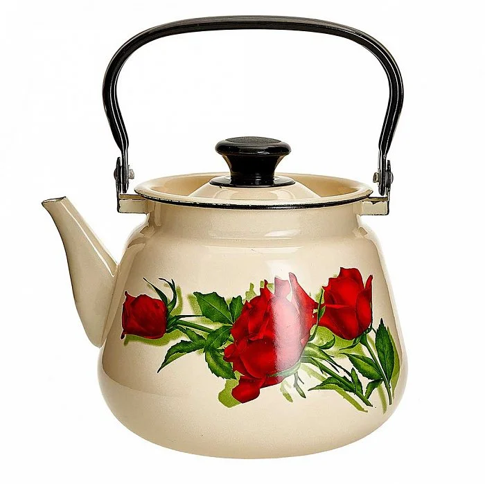 - Чайник эмалированный конический с металлической ручкой