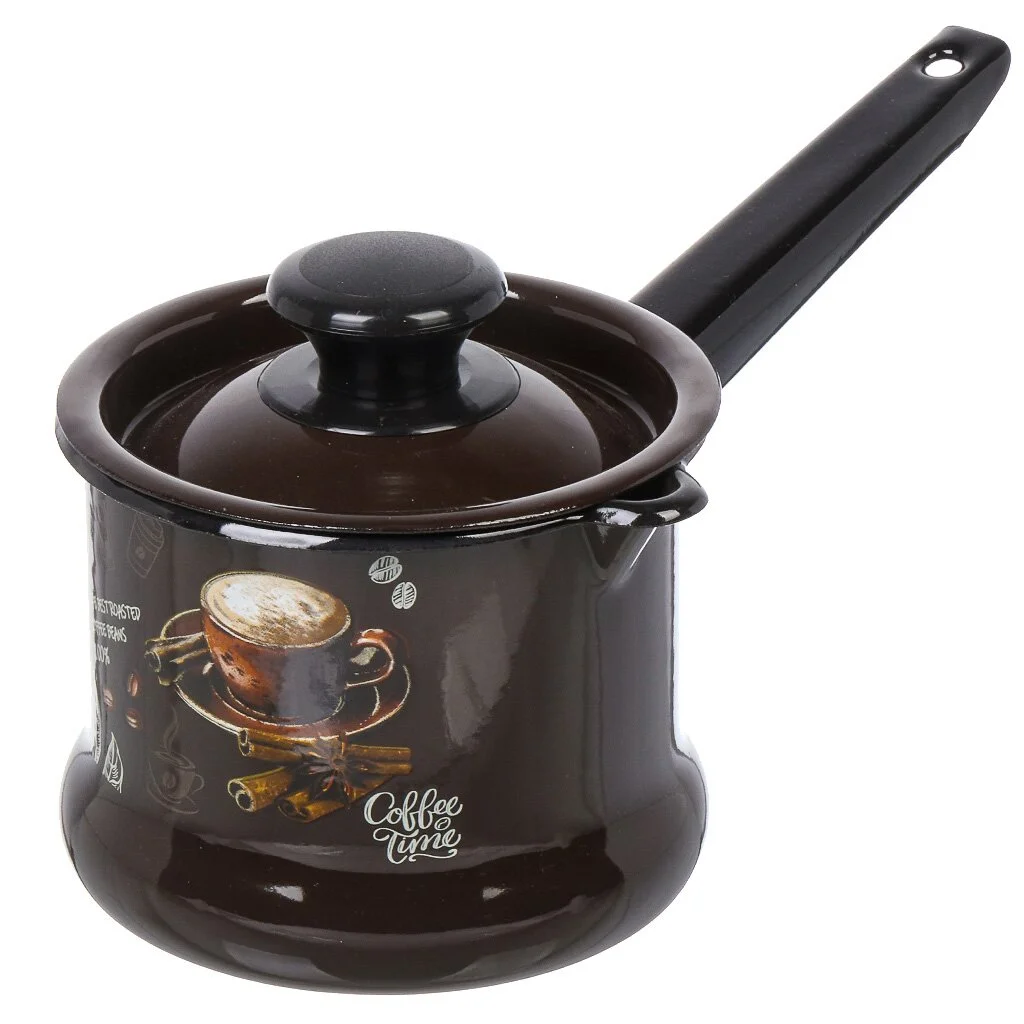 Ковш 1л с крышк.с рис.(т,-коричн.) Арабика 90204-072/4