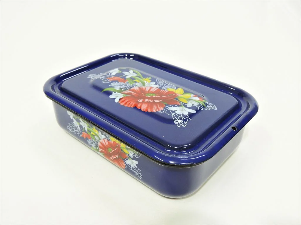 Лоток 42515-083/6 1,5л «Апрель синий/бостон» — эмалированная прямоугольная ёмкость с крышкой из плаской эмали и декором.