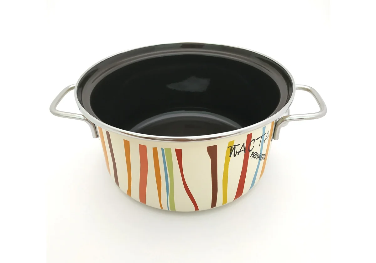Стальная эмалированная посуда производится из высококачественного металла, покрытого двумя слоями жаропрочной эмали. Для производства посуды используются экологически чистые цветные эмали, обеспечивающие высокую коррозийную стойкость.