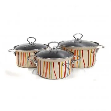 Состав набора: кастрюля с крышкой 1.9 л, кастрюля с крышкой 2.5 л, кастрюля с крышкой 3.7 л.