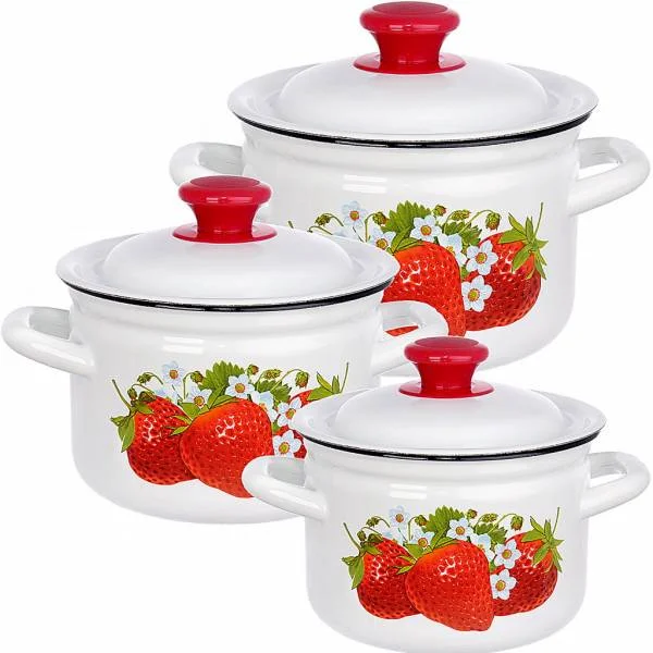 Набор кастрюль (6пр.) КМК Садовая Клубника-1 белый