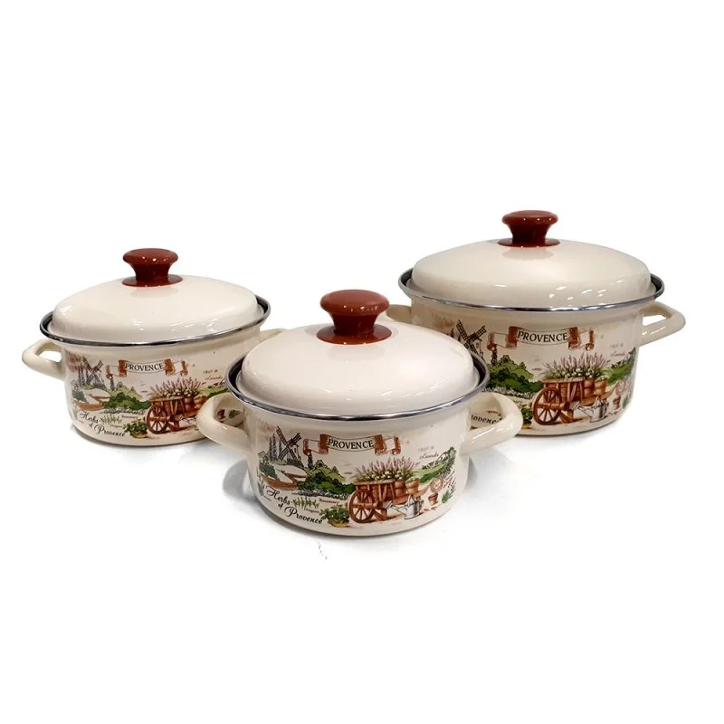Набор кастрюль"Травы Прованса-1" цилиндрической формы выполнены из стали и имеет высококачественное эмалевое покрытие. Все изделия в наборе оформлены оригинальным рисунком. В комплекте с кастрюлями есть крышки с ручками из термостойкого пластика. Кастрюли могут быть использованы на всех типах кухонных плит: электрических, газовых, керамических и индукционных. Подходит для мытья в посудомоечных машинах.