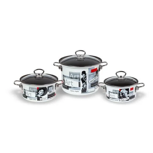 Состав набора: кастрюля с крышкой 1.9 л, кастрюля с крышкой 2.5 л, кастрюля с крышкой 3.7 л.