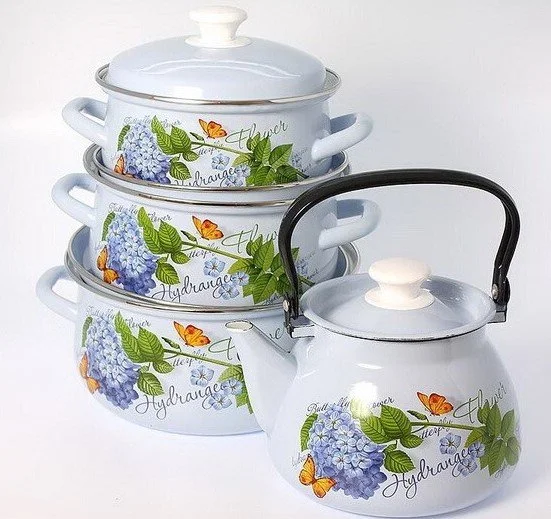 Набор кастрюль (8пр.) КМК Гортензия голубой