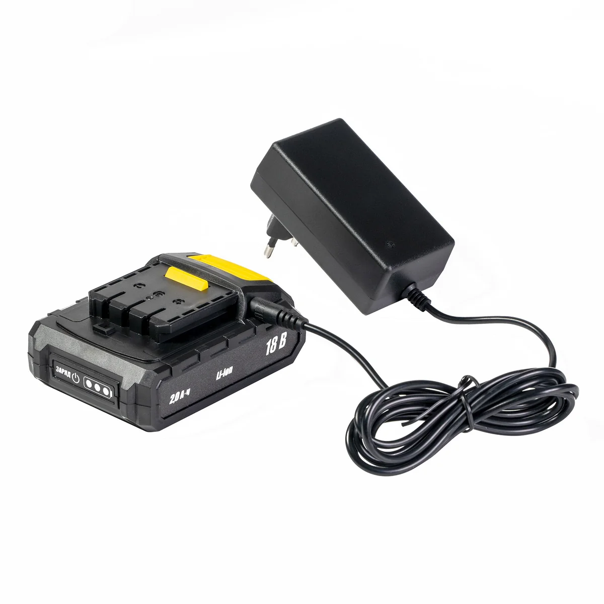 - КОМПЛЕКТАЦИЯ: аккумулятор (2 шт.), зарядное устройство (1 шт.), двусторонняя бита - установленная на корпусе (2 шт.).