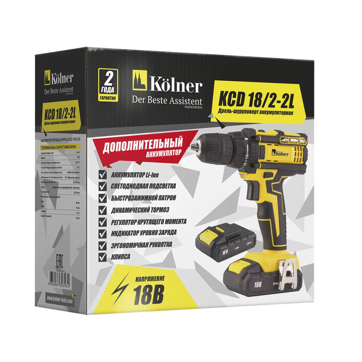 Аккумуляторная дрель-шуруповерт KOLNER KCD 18/2-2L