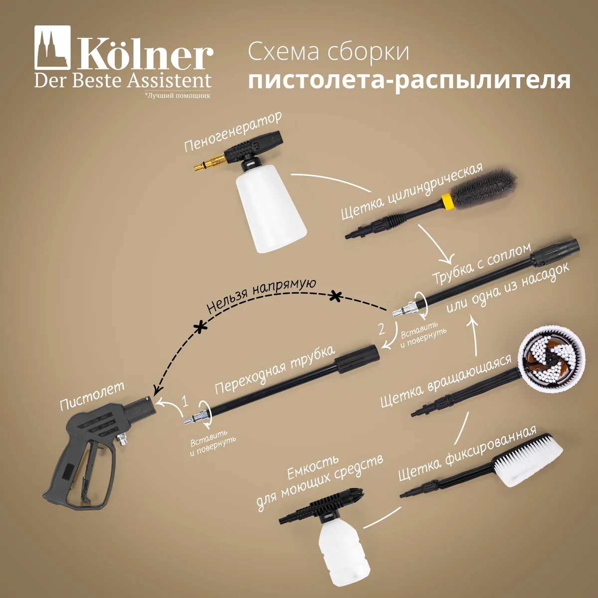 - РАЗБОРНЫЙ ПИСТОЛЕТ-РАСПЫЛИТЕЛЬ: для удобства транспортировки мойки.