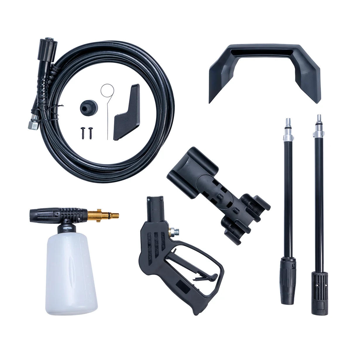 - КОМПЛЕКТАЦИЯ: пистолет-распылитель, удлинитель пистолета с соплом, гибкий шланг высокого давления, пеногенератор, переходник.