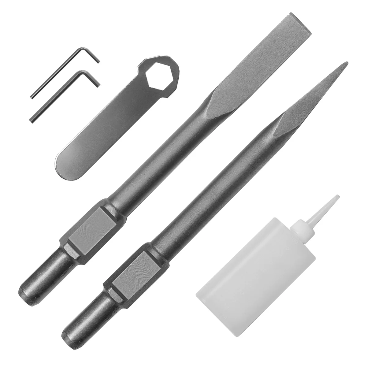 - РАСШИРЕННАЯ КОМПЛЕКТАЦИЯ: Инструмент поставляется в прочном металлическом кейсе с набором аксессуаров: Дополнительная рукоятка, долото, пика, емкость для масла, ключ шестигранный 2 шт., ключ гаечный, кейс.