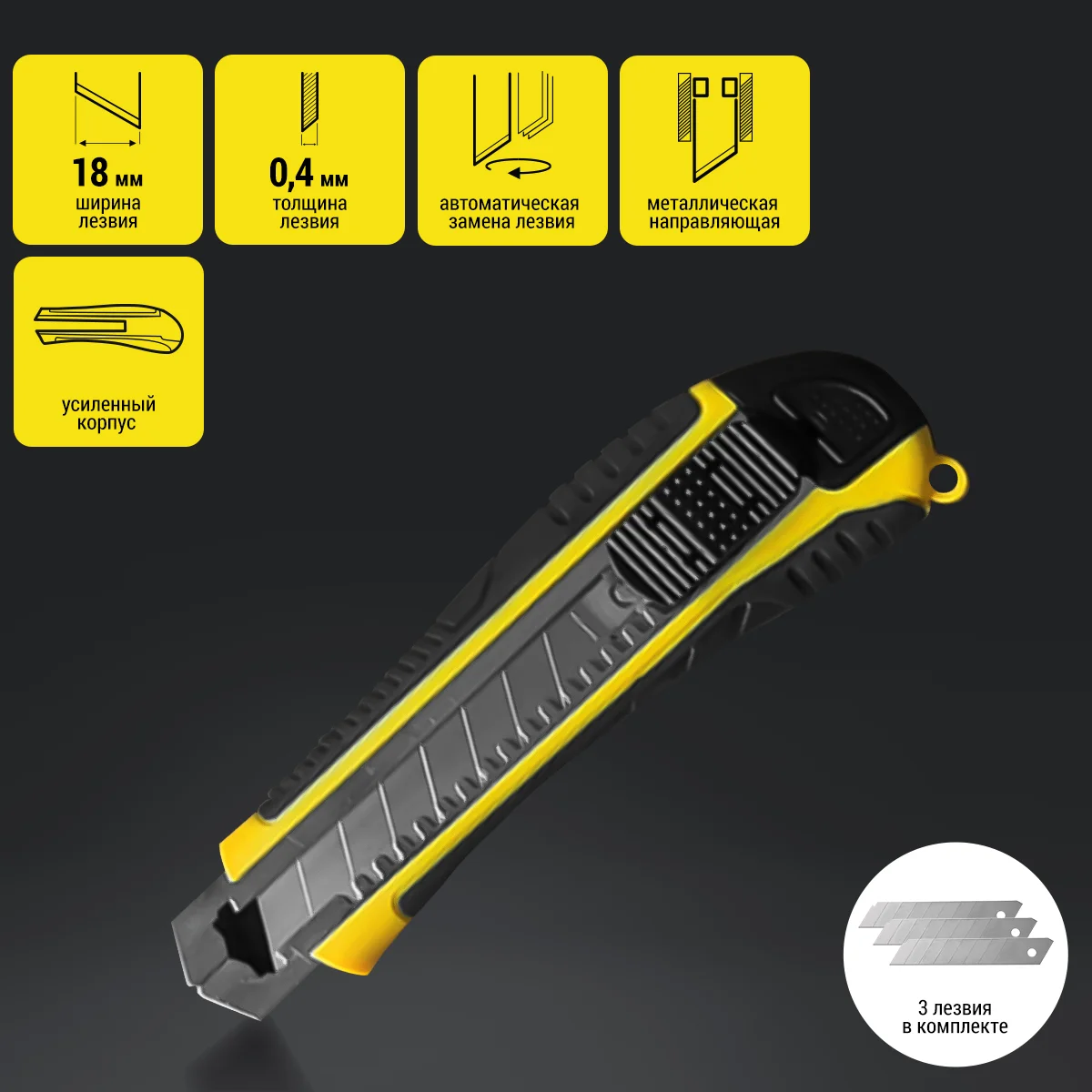 - Кнопка подачи с фиксацией лезвия