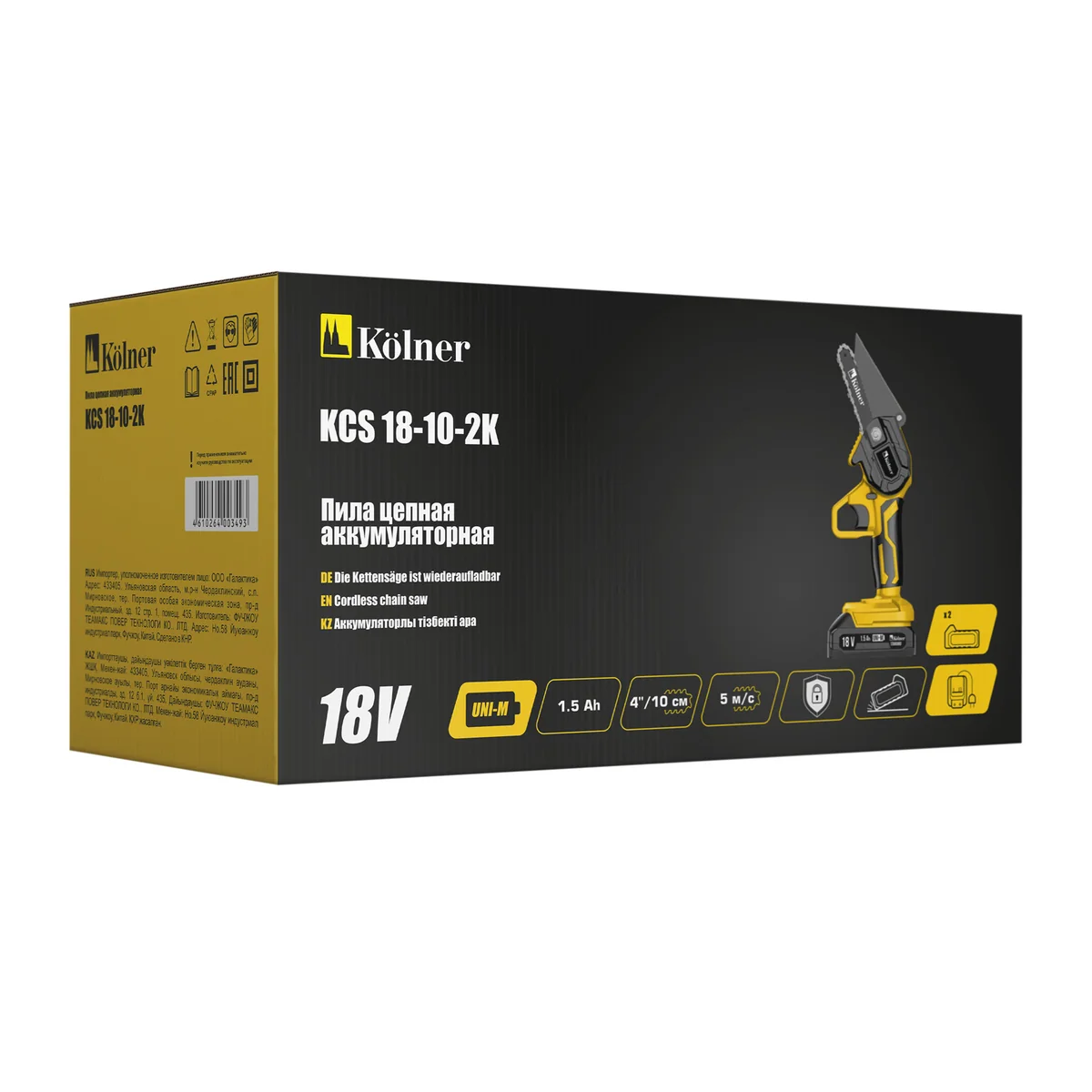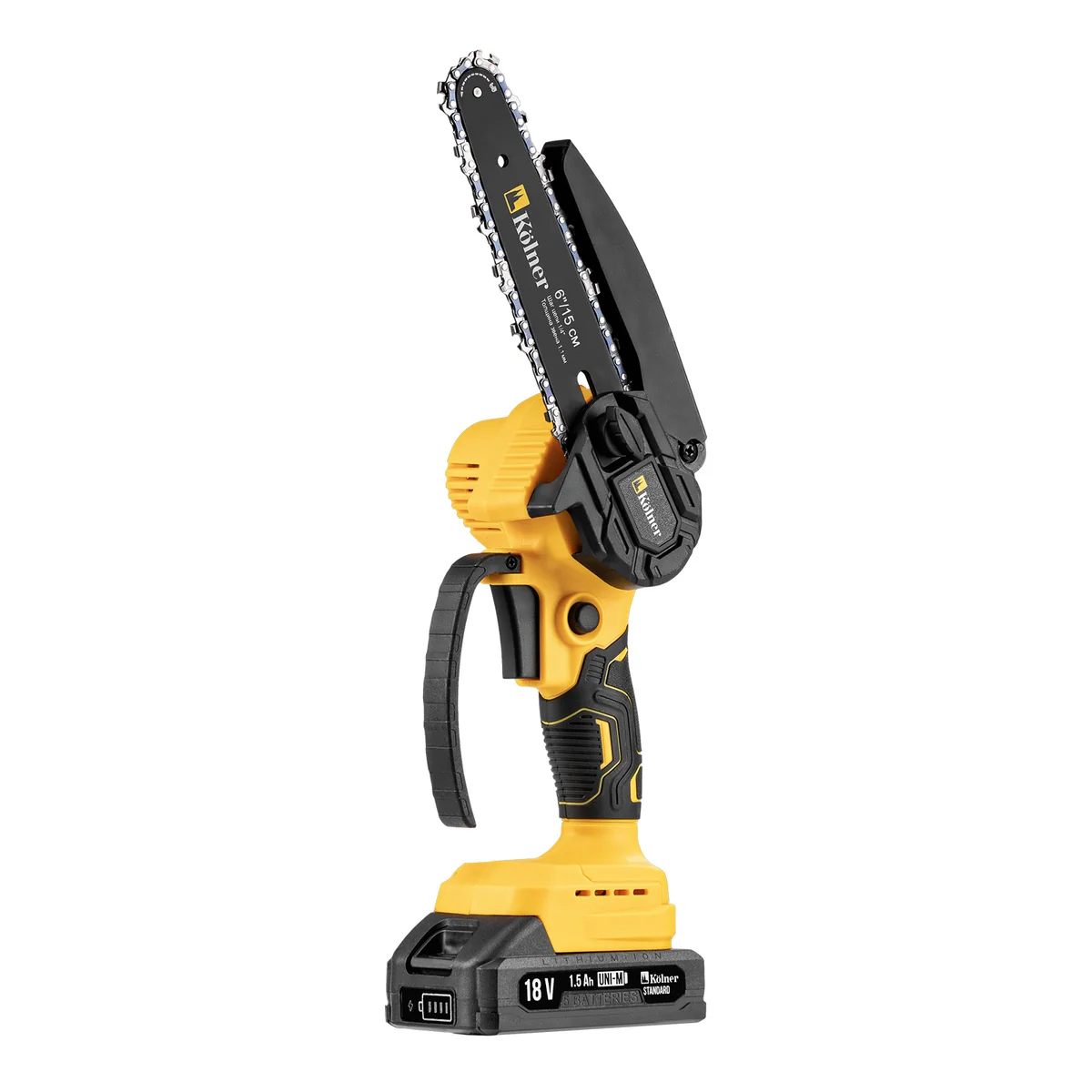 Kolner KCS 18-15-2K — идеальное решение для тех, кто ценит мобильность и удобство в работе. Эта пила цепная аккумуляторная, оснащенная Li-ion аккумулятором 18V UNI-M Standart, обеспечивает свободу передвижения без проводов и ограничений. С напряжением питания 18В и емкостью аккумулятора 1.5 Ач, работа длится долго без необходимости частой подзарядки.