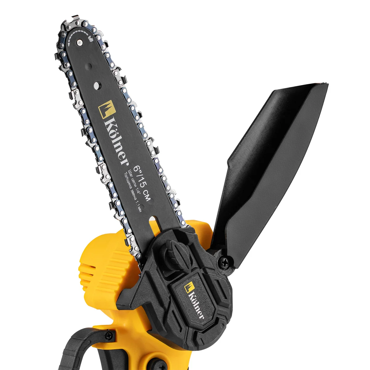 Скорость движения цепи достигает 5 м/с, что гарантирует эффективную и быструю резку. Длина шины 15 см и 37 звеньев цепи позволяют легко работать даже в труднодоступных местах. Легкость и компактность пилы — масса всего 1,3 кг — делают работу с ней комфортной и непринужденной.