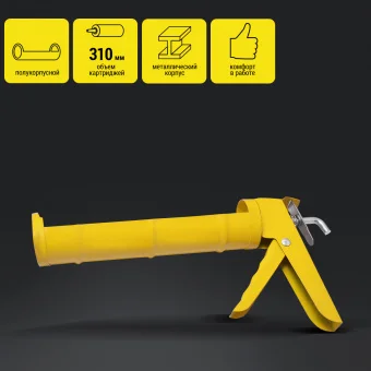 - Пистолет полукорпусного типа обладает повышенной жесткостью и прочностью, а также упрощает замену картриджей и обеспечивает удобство эксплуатации.