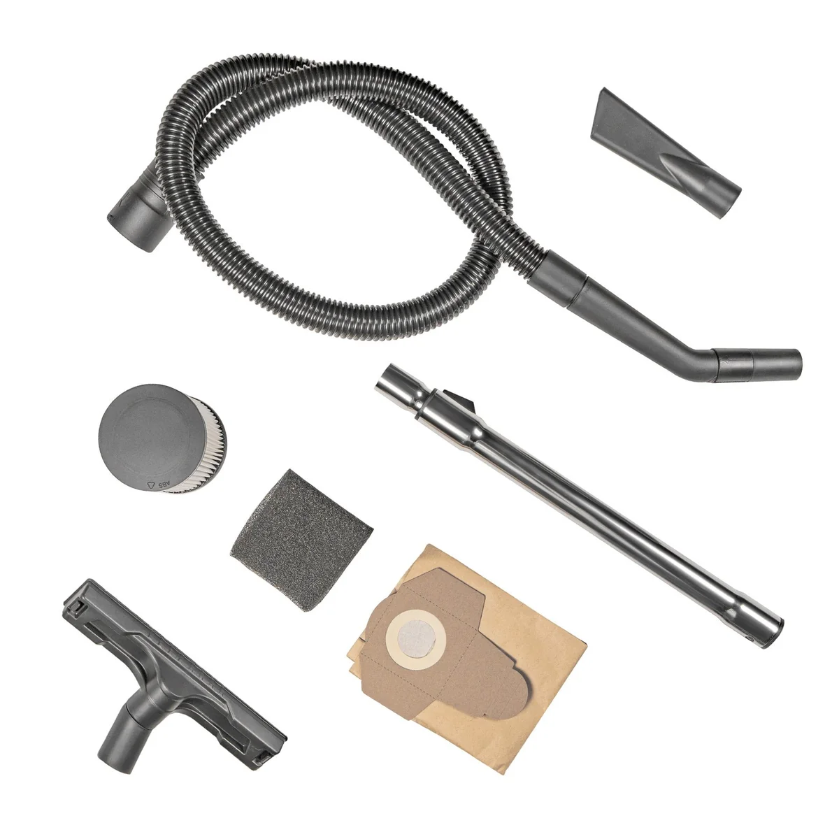- КОМПЛЕКТАЦИЯ: шланг гофрированный, труба телескопическая, насадка для пола, щелевая насадка, НЕРА-фильтр, пылесборный мешок, колеса(4 шт).
