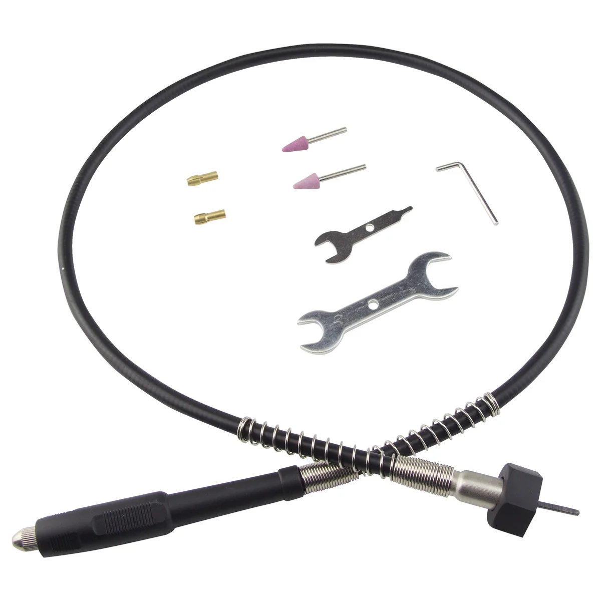 - КОМПЛЕКТАЦИЯ: заточной круг,установленный на станке 2 шт., защитный экран с креплением 1 комплект, рабочая площадка с креплением 1 комплект, гибкий вал, ключ рожковый, ключ-фиксатор г-образный, ключ цангового патрона, насадка гравировальная 2 шт.