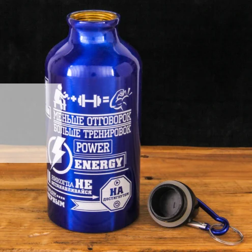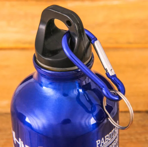 Такая бутылка — яркий и стильный аксессуар для тренировок или прогулок. Лёгкий и прочный алюминиевый корпус защитит содержимое от внешних воздействий. Пробка предотвращает протекание жидкости. К ней прикреплён карабин, за который фляга крепится на пояс, сумку или рюкзак.