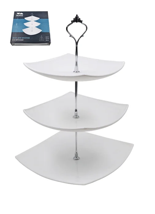 3-х ярусная ваза для фруктов FJP3AT WHITE 99214 предназначена для красивой выкладки фруктов, ягод или сладостей.