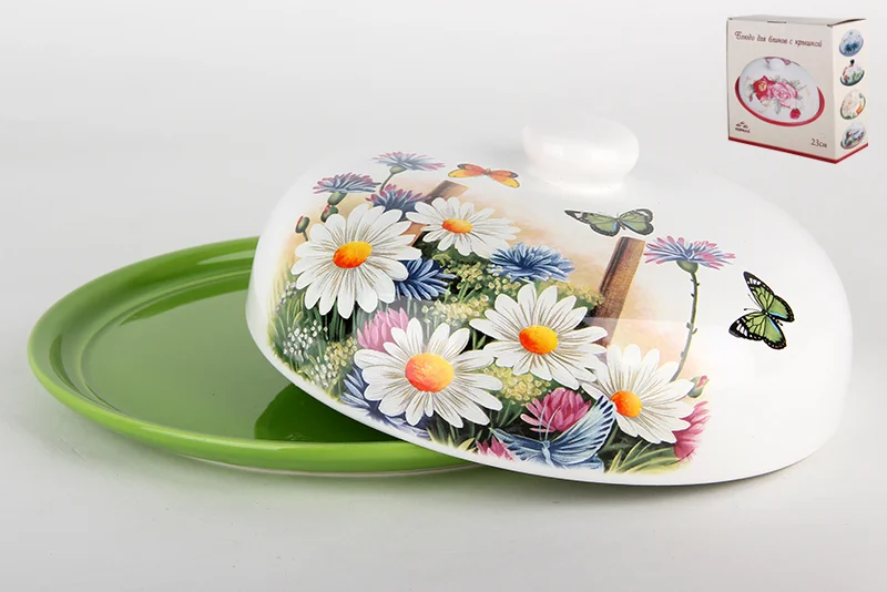 Блюдо для блинов с крышкой Ромашки d23см. Коралл HC604R-K03